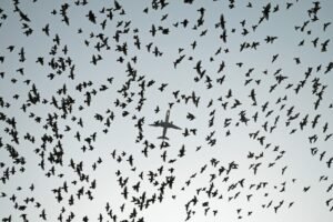 Sabemos que el avión está a muchos metros de distancia de la bandada de pájaros. Aunque la gracia está en...