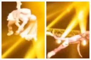 Un acróbata brasileño resultó herido el lunes por la noche tras caer desde unos cinco metros de altura durante una...