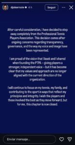 Novak Djokovic decidió renunciar a La Asociación de Jugadores Porfsionales de Tenis (PTPA), la cual reúne a los 500 mejores...
