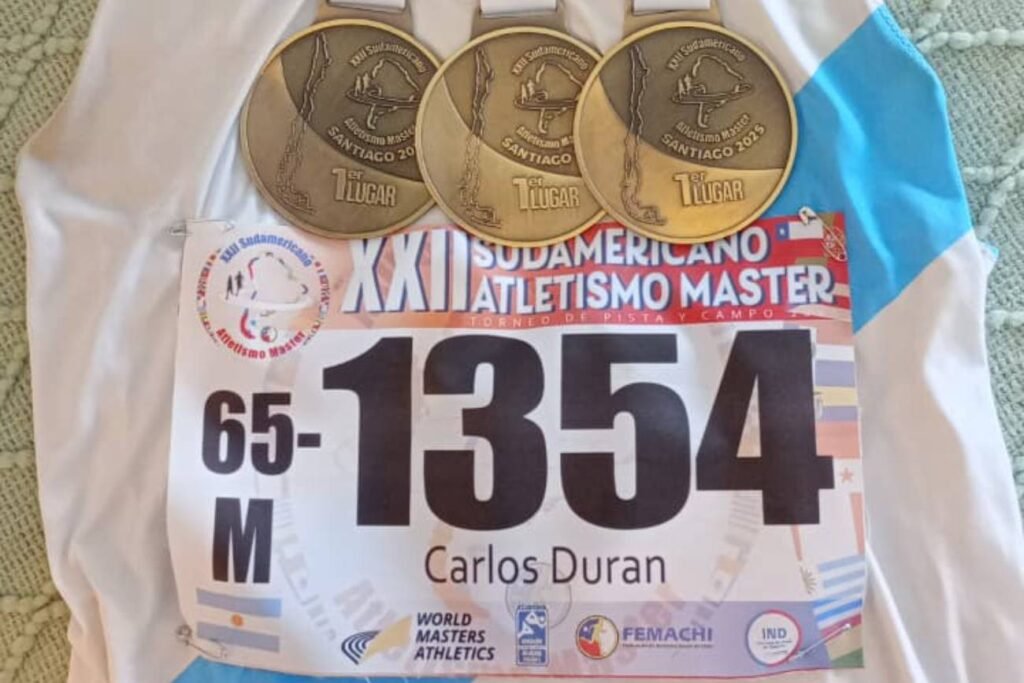 El representante de Córdoba Carlos Durán tuvo un desempeño soñado en el XXII Campeonato Sudamericano de Atletismo Máster (actualmente se disputa en Santiago de Chile).