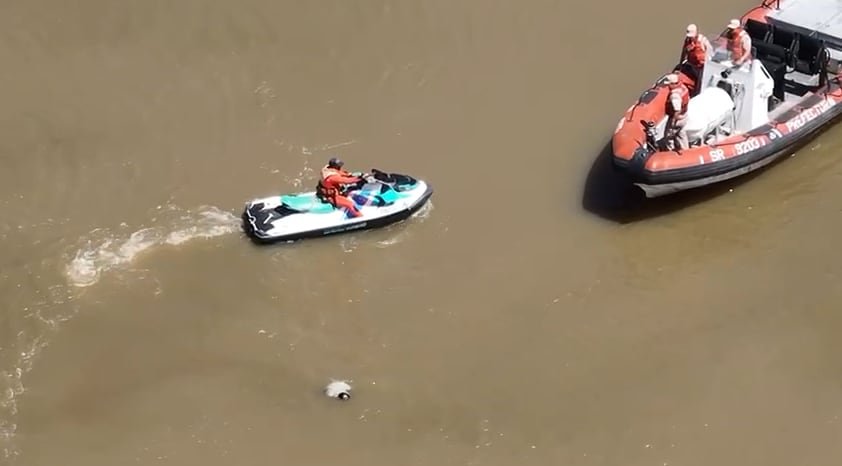 Personal de la Prefectura Naval Argentina y la Policía de la Ciudad trabajan intensamente en el lugar con un gomón y motos de agua para retirar los restos y realizar las pericias correspondientes.