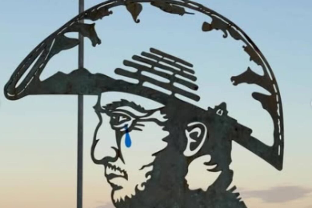 Luego de la polémica que se generó respecto del destino final del sable corvo de José de San Martín, un artista que vive en Rosario intervino la escultura del general que está emplazada en el Campo de la Gloria de San Lorenzo, un parque histórico ubicado en Santa Fe. El joven pintó en el rostro del prócer una lágrima azul.